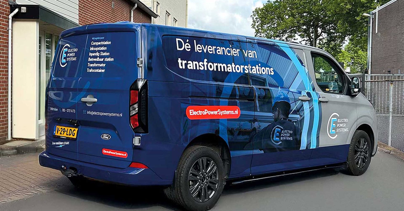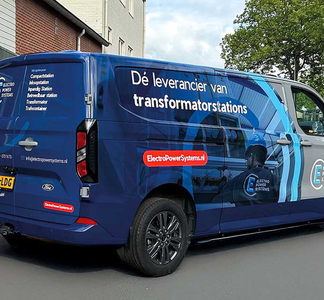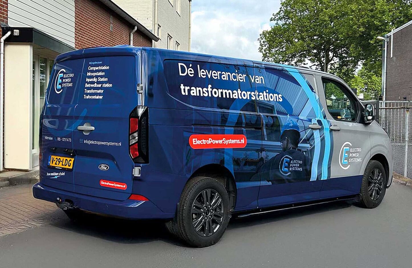 Voor Elektro Power Systems (EPS) uit Geldermalsen verzorgden we de belettering van hun Ford Transit Custom. Het ontwerp maakten we in samenwerking met het reclamebureau en de klant, waarna wij de technische uitwerking en montage voor onze rekening namen.